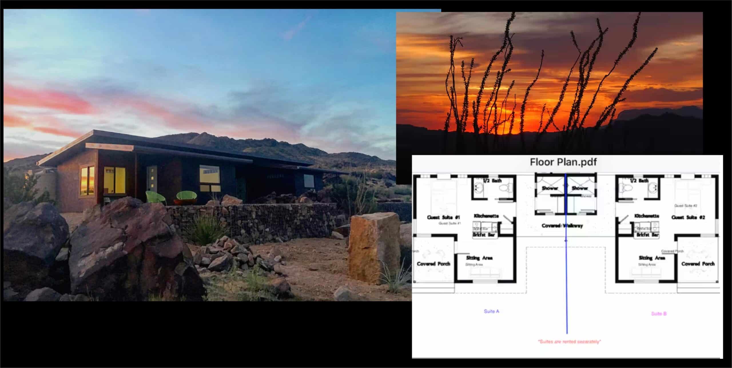 Nestled against a quiet hill and overlooking the Eastwood Mesa, our trio of stucco casitas offers a serene retreat 17 minutes from Big Bend National Park. Each one-room adobe casita is a blend of simplicity and comfort. Featuring minimalist interiors and distinctive arched doors amid desert scenery. We recently added basic cooking utensils, pots, pans and a one burner induction stove top. You can rent 1, 2 or all 3 of the casitas on property. Message us if you need help with a property buyout!